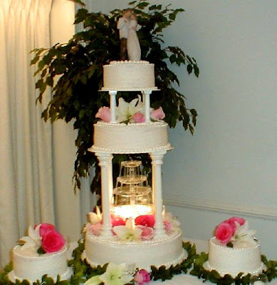 Wedding Cakes Decoration With Fountain, Flowers, Ribbon, Toppers, Stairs, and Lights, for the wedding cake became more beautiful and impressive. I like it wedding cakes fountain.. How about you elegant and unique wedding cakes..??